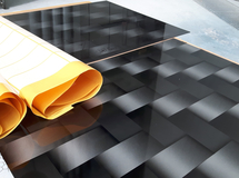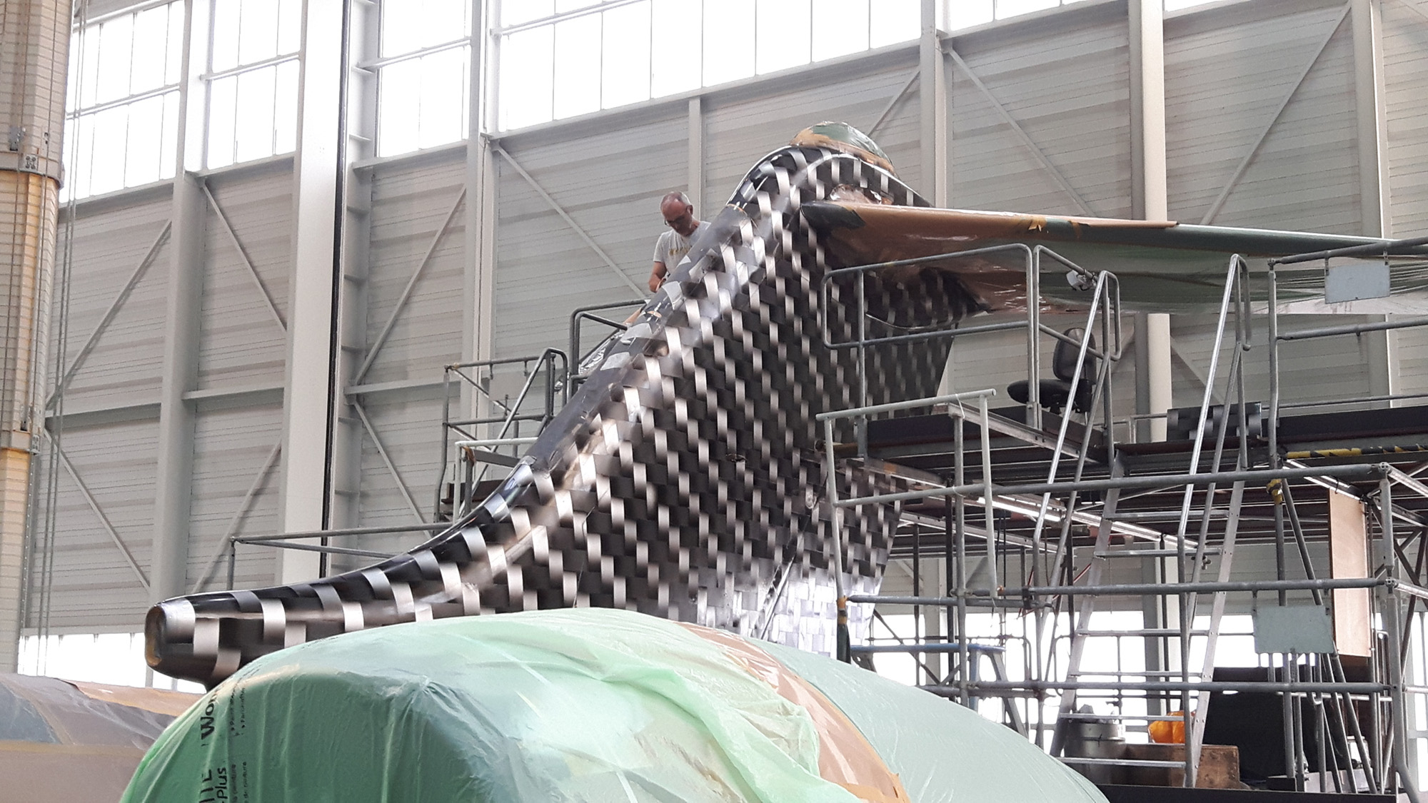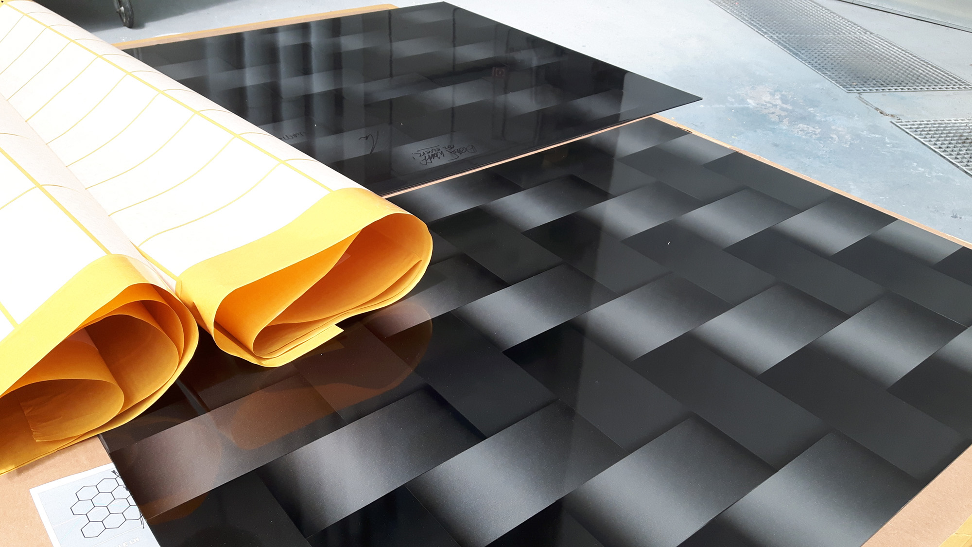 was responsible for drafting the overall paint job. The painting of the fuselage was carried out by external contractors. The job of partially painting the yaw rudders at the tail of the aircraft was entrusted to the experienced hands of the smart art team. The site in this case was an aviation paint shop near Munich. Over the course of about a week, the team first measured and then began adhering the design to the plane. The unmistakable “carbon” look was achieved through carefully lining up countless individual elements, painting each of them in several layers and adding shadows. Because the exterior hull of an airplane is exposed to certain thermal and mechanical influences, the material used here was specially certified aircraft lacquer. The challenge for this project, in other words, wasn’t the size of the design or the complexity of the task, but rather the scope and precision needed for each individual step of the process to transform a monochrome surface into a deceptively life-like carbon surface. All in all, the result speaks for itself, doesn’t it? Just contact us if you’re interested in your own special texture or imitation material for a surface, building or vehicle.