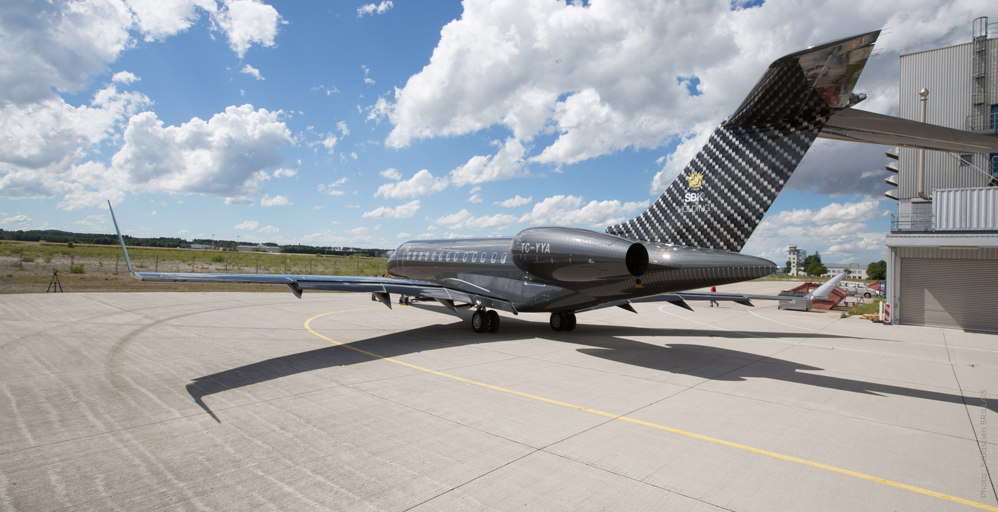 Because the smart art team loves a good challenge, the partial painting of a private airplane in an elegant “carbon” look was the perfect job. Carbon is a very lightweight yet sturdy synthetic material with a characteristic surface texture. The job was to precisely duplicate this web-like structure using paint. French designer Didier Wolff (www.happydesign.net)