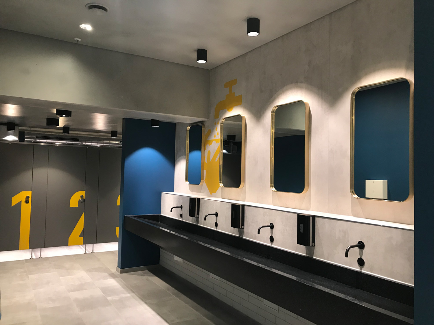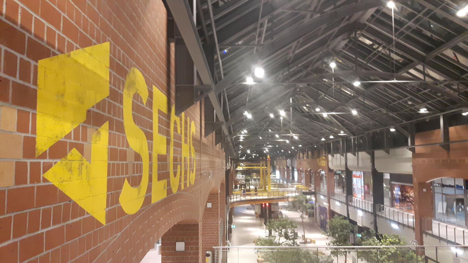 “Vintage meets modern” was the guiding principle for smart art’s commission for the Sachsen Allee shopping centre in Chemnitz: large-format lettering, and a visual wayfinding system. A variety of surfaces like plaster, brick and metal were first prepared and then covered with striking colours. The result was a space that not only looks more appealing, but also makes it easier for visitors to get their bearings, even from a distance. Where am I? Where do I need to go? Thanks to smart art, those questions are no longer asked. Symbols and numbers make it even simpler for visitors to find their way around the giant shopping centre. This was accomplished not with unsightly signage on poles, but rather with a custom colour scheme that suits Sachsen Allee Chemnitz’s corporate design. Well done, smart art!